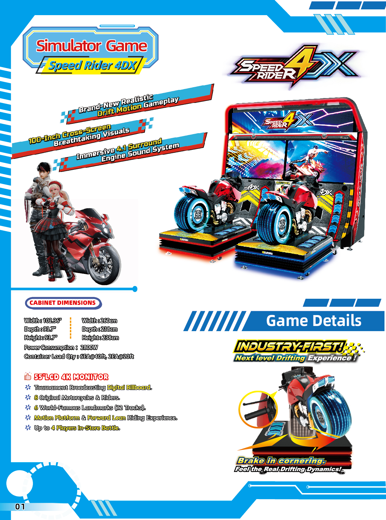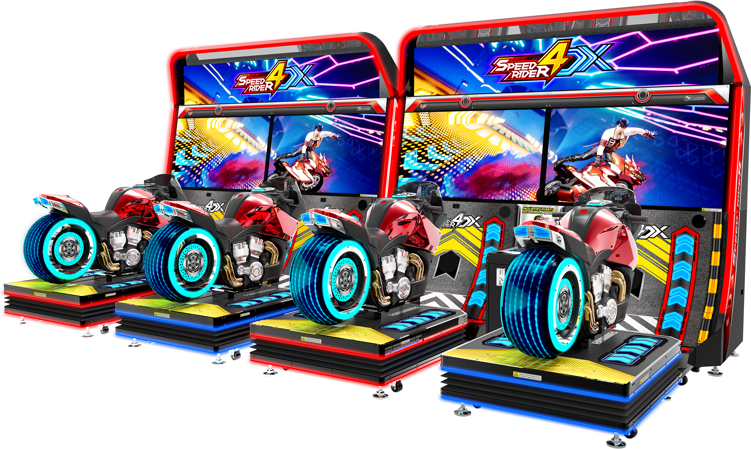 The massive 100-inch cross-screen offers breathtaking clarity, while the immersive 4.1 surround sound engine pulls players straight into the action. A forward-lean motion platform recreates the authentic feel of being on a real superbike, providing unmatched realism. The built-in tournament-style digital billboard elevates the competitive atmosphere, making it a standout centerpiece in any game room.